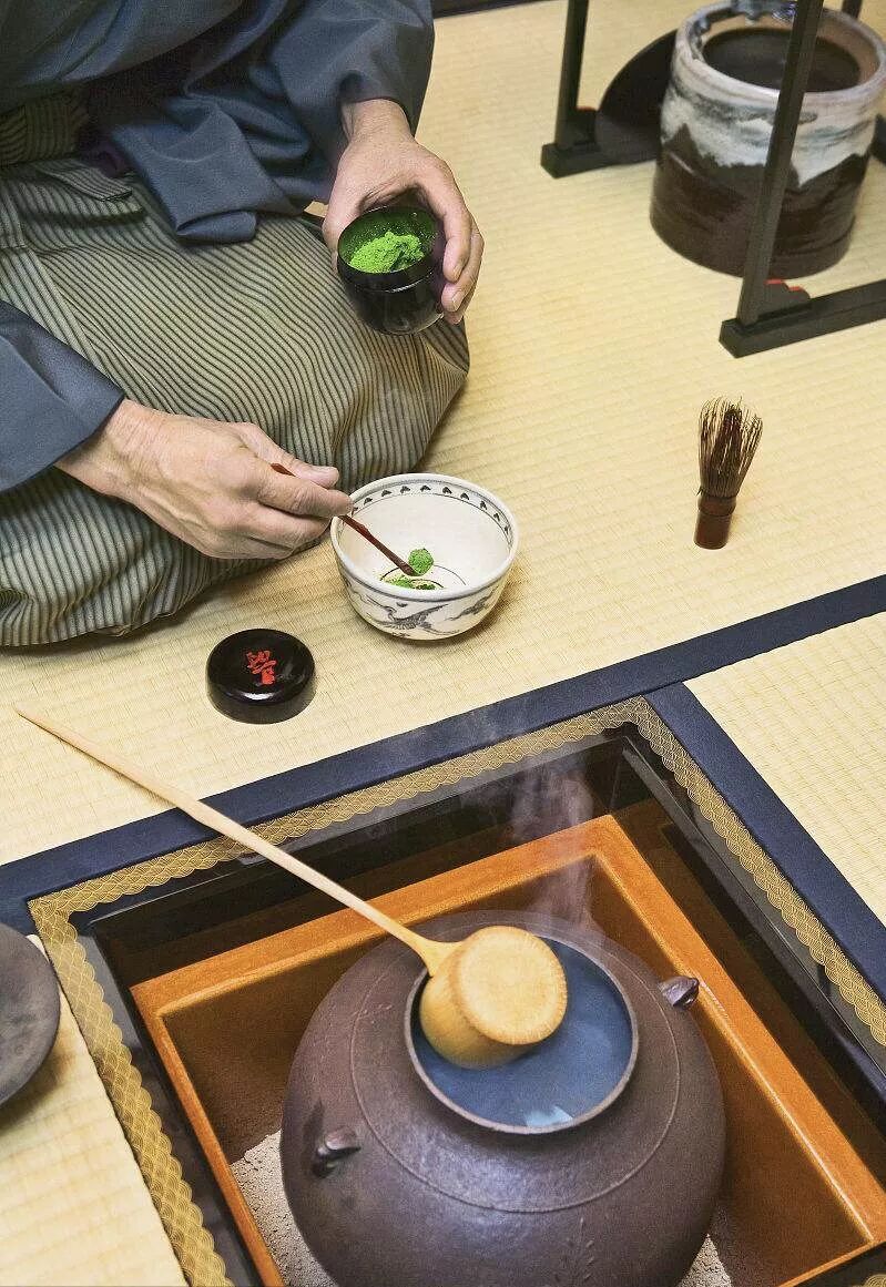 现在的日本茶道分为抹茶道与煎茶道,茶事活动对场所非常讲究,要在约为9平方米大小(有的大些有的小些)的茶室中进行,茶室的中间设有陶制炭炉和茶釜,炉前摆放着茶碗和各种用具,周围设主、宾席位。