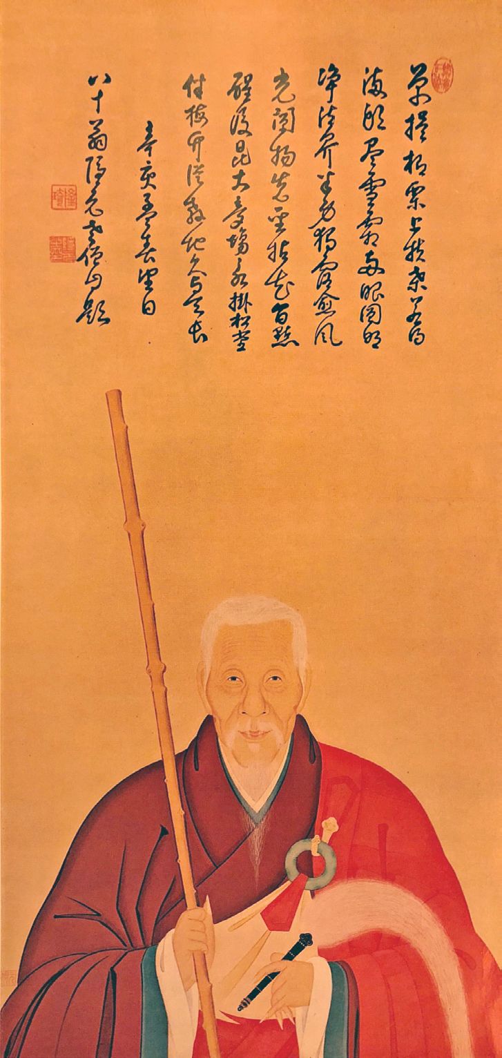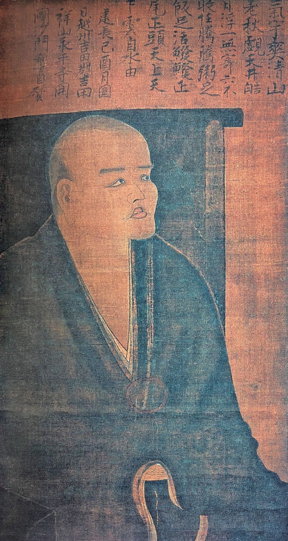 图205 隐元隆琦画像赞 松隐堂赞禅宗传到日本,主要形成了临济宗、曹洞宗和黄檗宗三派。黄檗宗是由中国明朝隐元禅师传到日本。隐元禅师原本修习临济宗,而黄檗山是中国临济宗的祖庭, 因此日本的黄檗宗与临济宗的教义在许多方面有共通之处(图 205)。中国禅宗传到朝鲜半岛,则有了曹溪宗, 它是由慧能再传弟子所创“九山门禅”中的八门合并而来,因慧能与神秀纷争而入曹溪山宝林寺而得名。