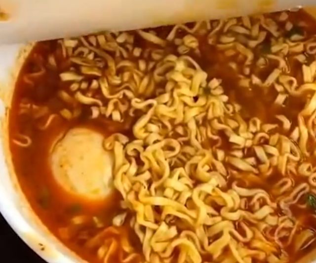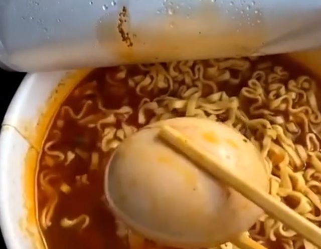 近日,在中国台湾。画面里显示的是一位小姐姐向大陆介绍台湾泡面的一幕。台湾一位小姐姐打开了一盒泡面,向镜头展示了有一包牛肉,还有一颗茶叶蛋。用热水把泡面泡开之后,泡面冒着热气,看上去非常诱人的样子。