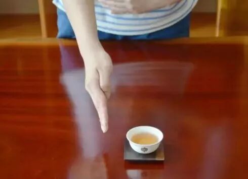 主人为客人倒茶时,客人要右手五指并拢,作出礼让姿势,以示谢意,后来演变为,客人药用食指和中指轻扣桌面,表示感谢。