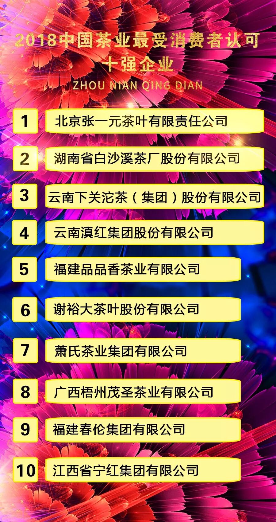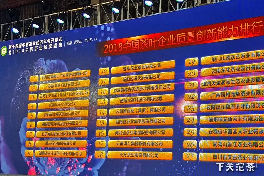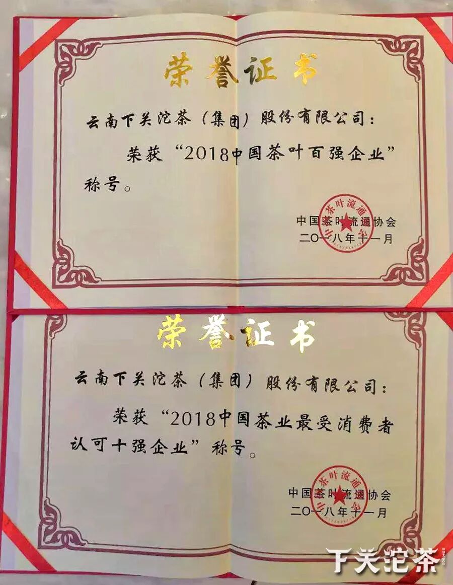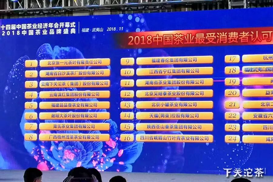 2018中国茶业品牌盛典︱下关沱茶入榜2018“中国茶业最受消费者认可十强企业”与“中国茶叶百强企业”