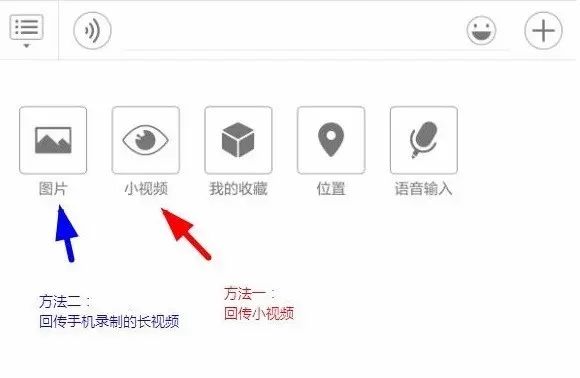 方法一:在内进入对话模式(即关闭菜单),点击“+”添加小视频,然后可以回传10秒以内的视频;