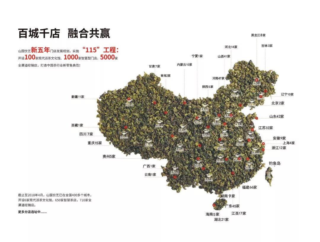 同时不断加强品牌塑造,并根据市场需求不断进行经营战略转型升级。现在山国饮艺已经在全国400多个城市,开设6家现代派茶文化馆,650家智慧茶店,710家全渠道经销店。