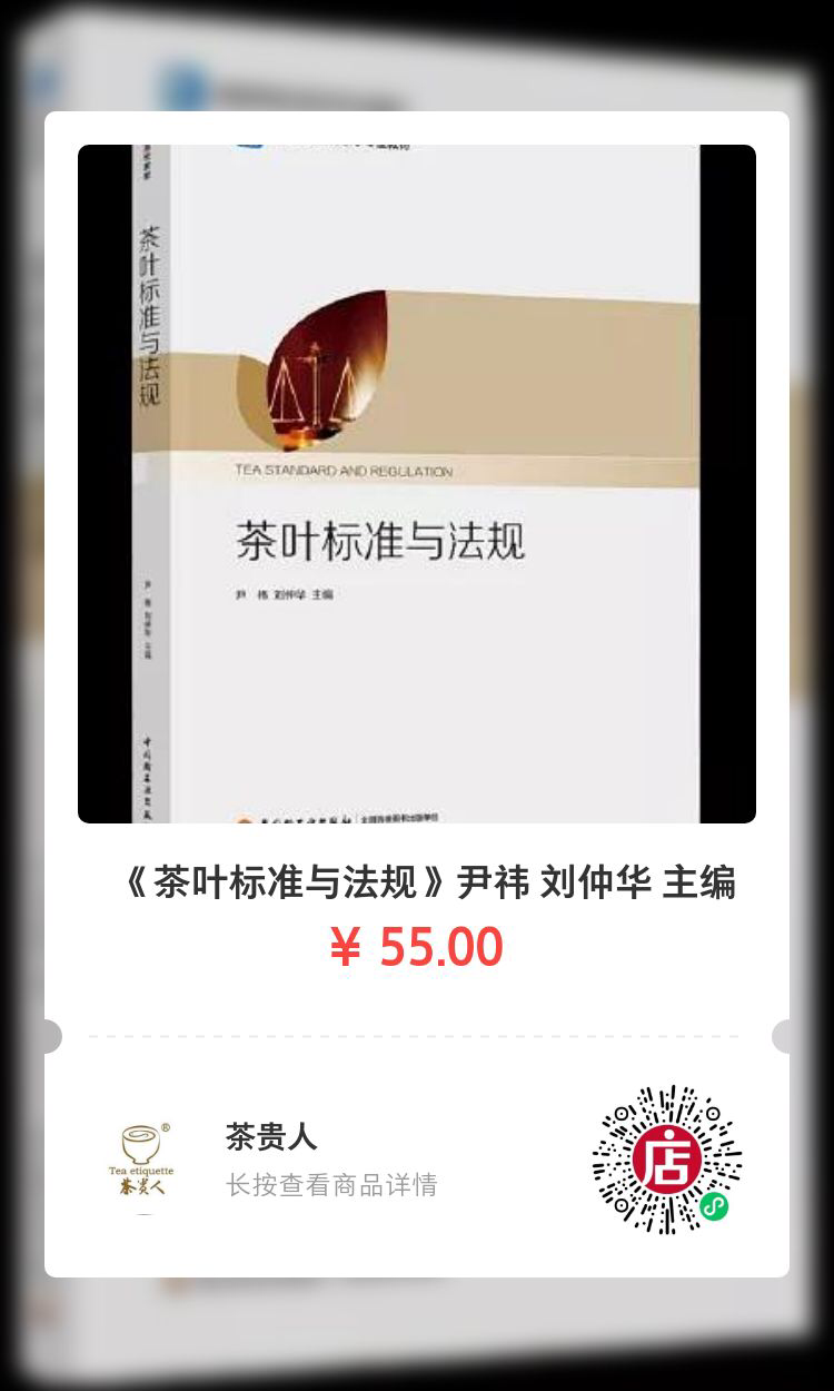 点击上面小程序购书及查阅详情书名:《茶叶标准与法规》全国茶标委副主任委员兼秘书长 中茶院院长尹祎全国茶标委副主任委员 中国工程院院士刘仲华主编出版时间:2021年元月