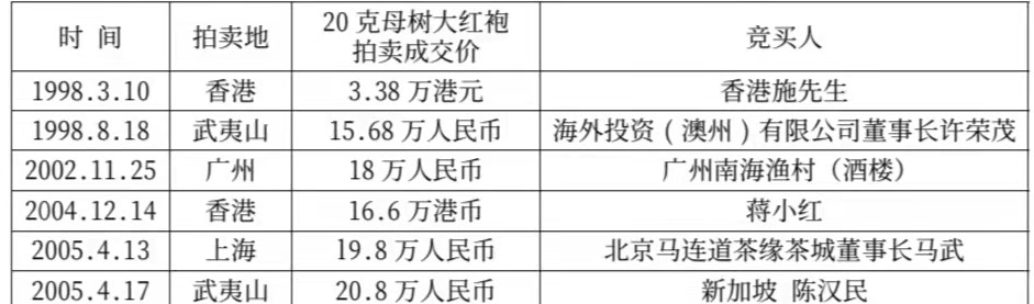 又因为茶树仅3株,产量非常少,每年产量不到1千克,物以稀为贵,2005年曾先后被拍出19.8万,20.8万(20g)的价格,不愧为茶中“熊猫”,是名副其实的“天价”茶。