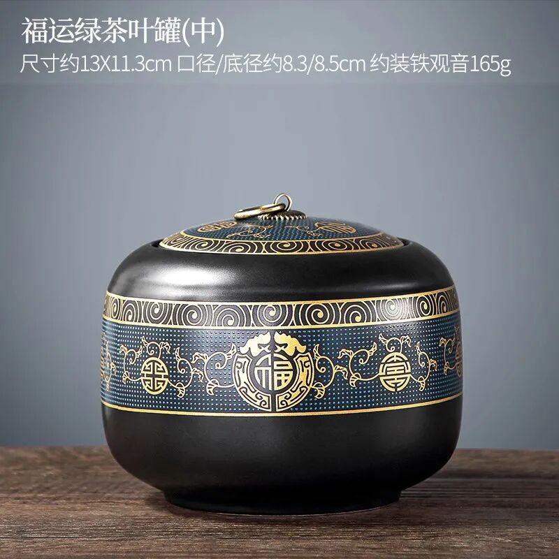 唐丰陶瓷茶叶罐家用半斤装红茶绿茶普洱茶防潮密封罐中式茶叶盒储茶罐福运绿茶叶罐中