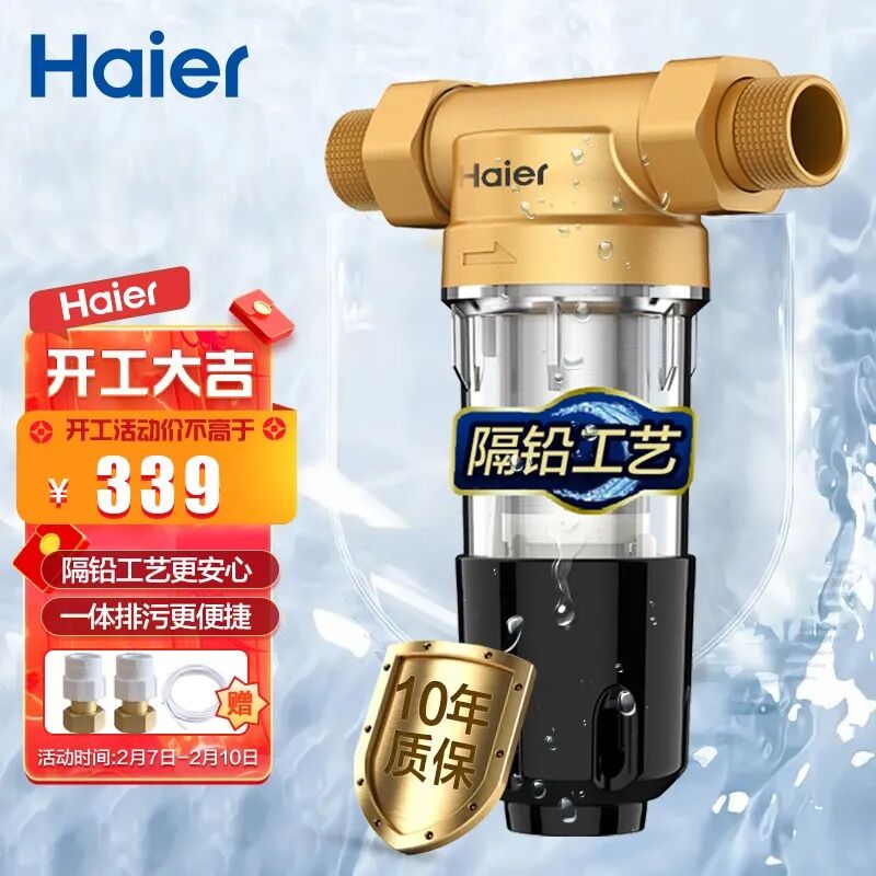 海尔Haier前置过滤器40微米免拆反冲洗家用大通量管道自来水全屋净化净水器中央净水机PF2A 6分接口 反冲洗¥329到手价评论8万+点击立即购买京东购物