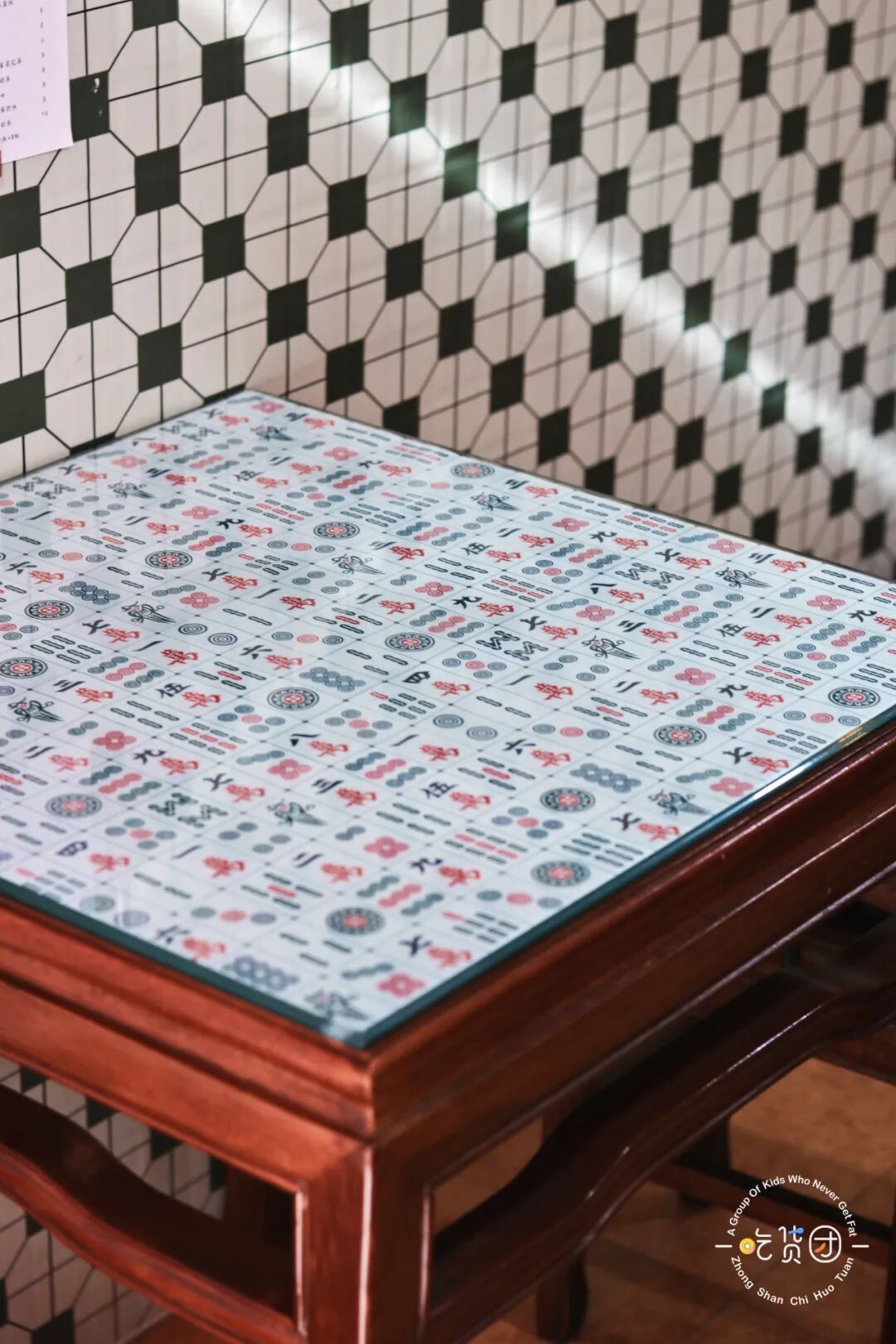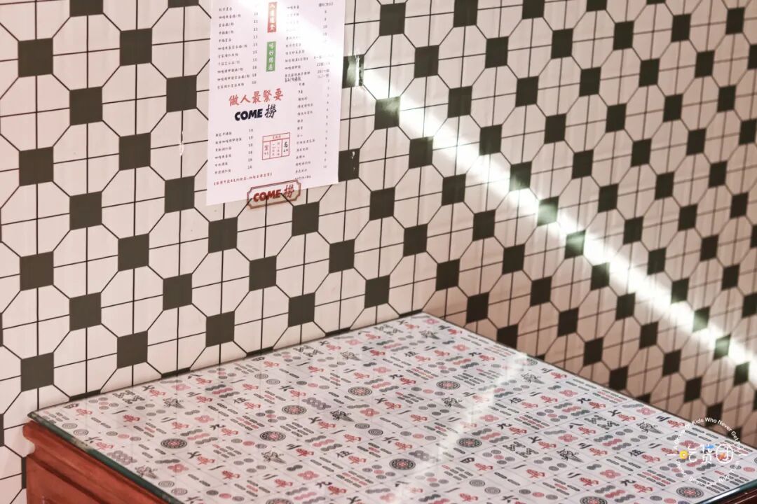 桌椅也是选用了比较复古的款式,桌面铺满了各种牌面的麻将,我想,麻将爱好者进来都要乐疯了!