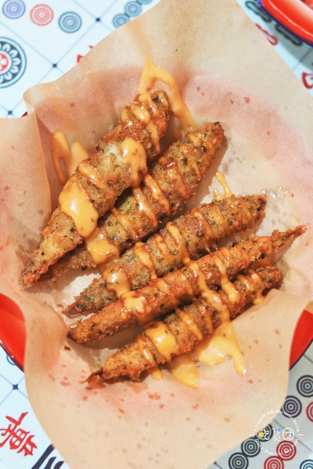 头粗尾巴小的炸虾条,形状可爱招人喜欢,蘸点番茄酱更美味。每条虾条里都真的有完整的虾肉,“嘎嘣”咬一口,外脆内嫩,还有若隐若现的芝麻香~