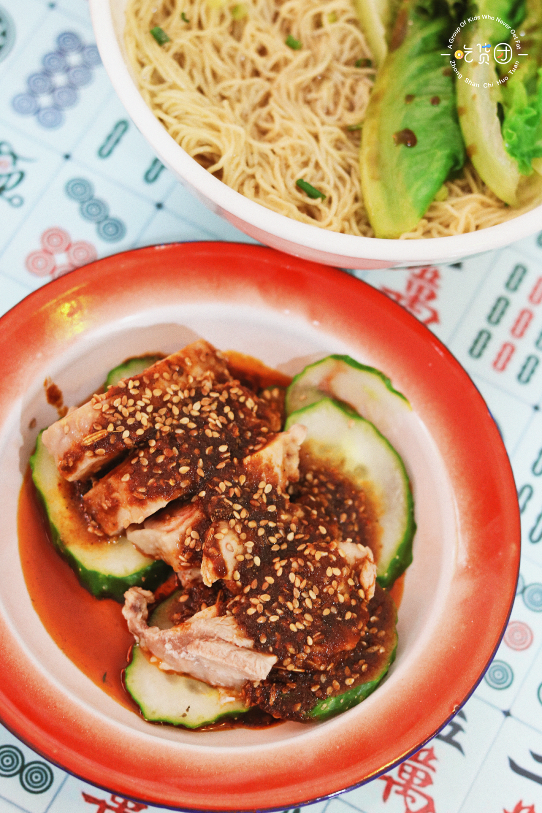 店里的竹升面也很有劲道,咸香碱水味,搭配起来也不会违和。再加上有生菜和青瓜,营养、口味都得以均衡,别有风味的口水鸡,无论是配饭还是面,都非常值得一试。