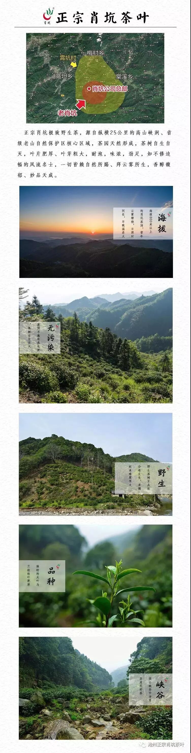 肖坑茶叶产于肖坑原产地茶园,海拔1000多米以上高山深谷,常年云雾缭绕、峰峦叠翠的高山野生茶,茶树自生自灭,茶树是当地最名贵品种“野生大叶马兰枝”。