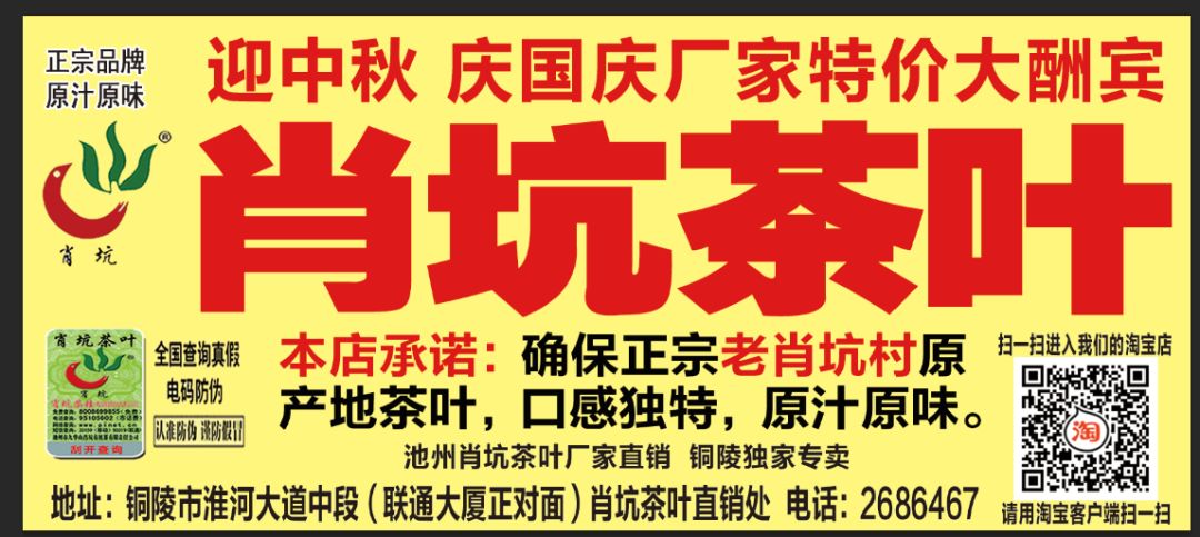 地址:铜陵市淮河大道中段(联通大厦对面)肖坑茶叶直销处