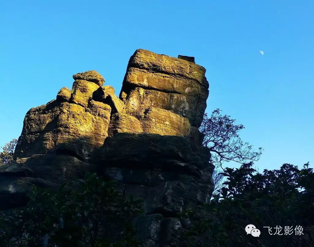 太阳快下山了,看到日月同辉,我们也准备下山,曲江罗坑神奇的茶岩顶,改日我背着单反相机再来与您相会