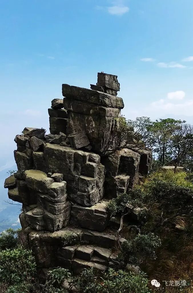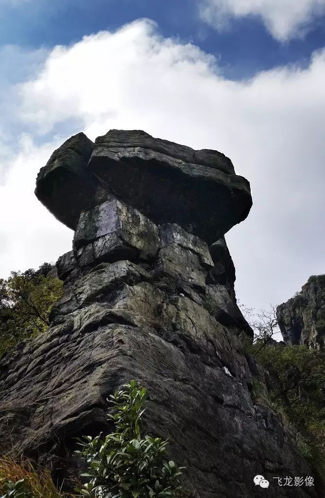 大自然的造化真是奇妙,这里的石头像什么都可以有,只怕你想不到,鬼斧神工,惟妙惟肖。梵净山那著名的蘑菇石算什么,在这里起码能找到四处这样的石头,而且还是三层,四层叠加,我很好奇,它们究竟被什么机器切割的如此平整,又是什么力量让这些平整的石头错位的叠加在一起呢?要知道,拿现代化的吊车作业也不一定做得到啊,经年累月,风吹日晒,依然如如不动,因为石头是错位的,就是说,若按物理学的重力作用,它们叠在一起重心是不稳的,而千百年来,它何曾掉下来过,站在上面照张相真是心惊惊,克服不了这多余的恐惧。