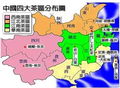 全国可分四大茶区:即江南茶区、华南茶区、西南茶区、江北茶区。
