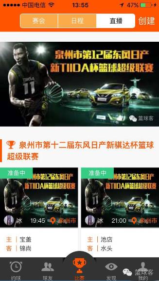 进入“篮球客”APP——比赛菜单——直播——找到对应的比赛