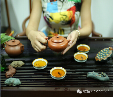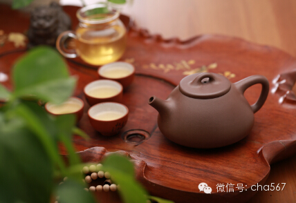 冲泡乌龙茶有专门的茶具。广东、福建人喜爱用"烹茶四宝"------潮汕烘炉、玉书、孟臣罐、若深瓯.潮汕烘炉是烧开水用的炭火炉;玉书为烧开水的水壶,一般是扁形的薄瓷壶,约能容水2O克 ;孟臣罐为紫砂壶;若深瓯是微型精制的白色小瓷杯。冲泡前先用开水将茶具(茶壶、茶杯、茶盘)淋洗一遍,以保持茶具洁净,又利于提高茶具本身的温度。当壶中置茶以后,沸水沿壶内壁缓缓冲入,在水漫过茶叶时,便立即将水倒出,称之为"洗茶",洗去茶叶中的浮尘和泡沫,便于品其真味。洗茶后即第二次冲入沸水,水量以溢出壶盖沿为宜,盖上壶盖。文章来自号:cha567 。冲水的方法应由高到低,且在整个泡饮过程中需经常用沸水淋洗壶身,以保持壶内水温,充分泡出茶叶的香味。