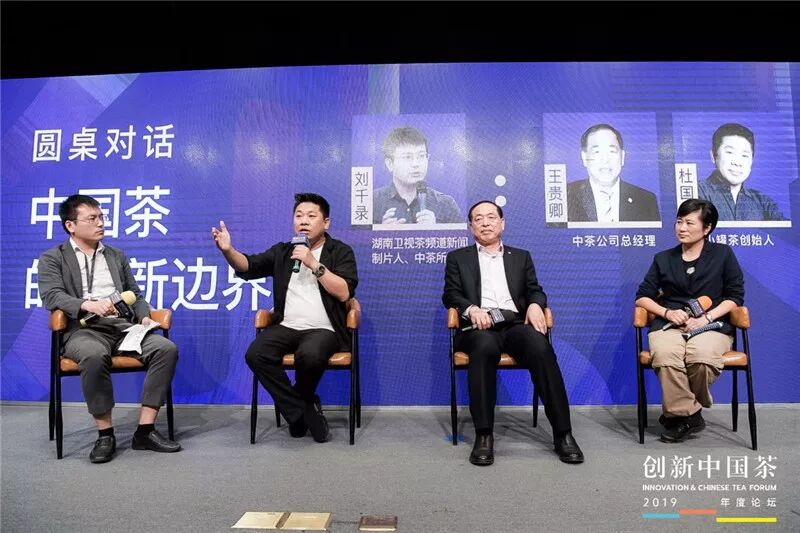 第二部分以“中国茶的创新边界”为题,由湖南卫视茶频道刘千录对话中国茶叶有限公司总经理王贵卿、小罐茶创始人杜国楹,山青花燃创办人李钰,三位嘉宾站在产业发展角度,从产业宏观层面解读了茶品牌的发展,为行业发展献计献策,一同探索中国茶的未来市场。