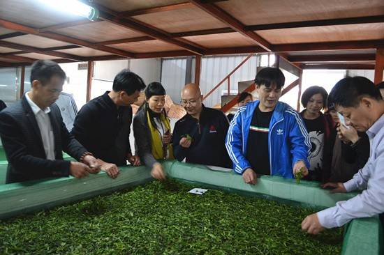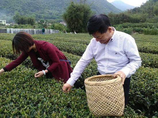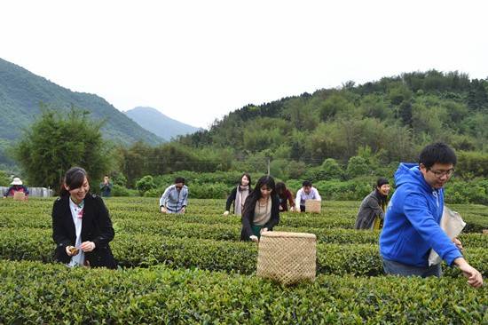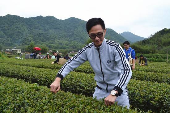 领导与选手们共同学习采摘茶叶