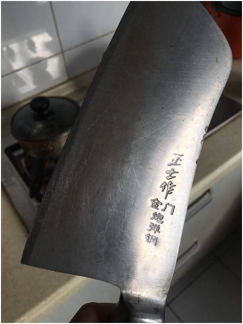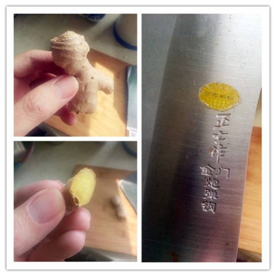 1. 准备好香料,例如姜、八角桂皮等,如果向山东人老陈致敬还可以放入大葱。为了模仿小刘当年创制茶叶蛋时的壮举,我在金门买了一把“金门炮弹钢”菜刀,用来切香料。此刀用金门炮战时遗留下来的弹壳制成,锋利无匹。