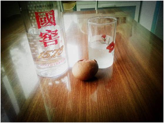剥去蛋壳的瞬间我紧张得差点休克,生怕连长您这中医是冒牌的、煮出来的蛋上面仍然有字。结果果不出您所言,上面的字被茶碱消去了,一片空白,连长,你个狗日的,果然是老中医!