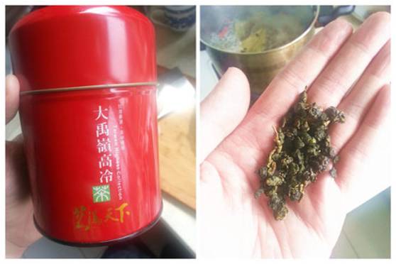7.等水开后放入茶叶,这里我选用的是来自台湾的发酵茶:大禹岭高冷茶,据老陈说这就是当年小刘第一次做茶叶蛋时使用的茶叶。