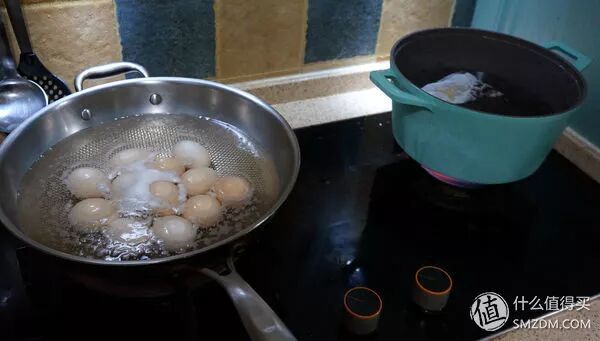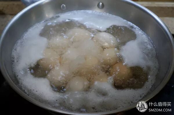 5、另一边汤锅加热到沸腾的时候,这边鸡蛋也应该煮到78成熟了。