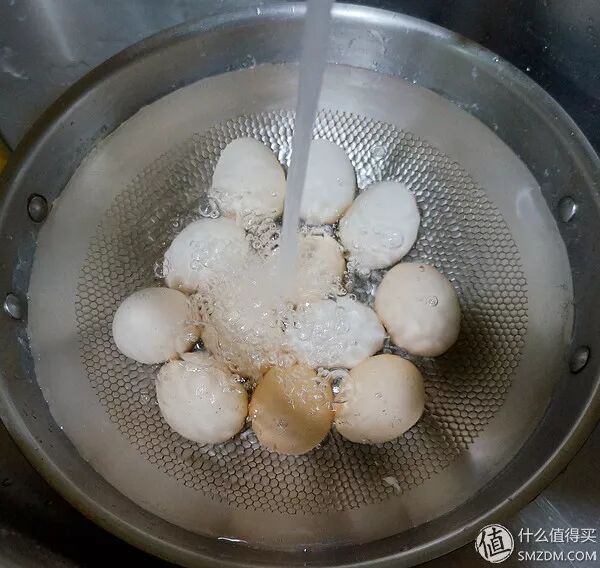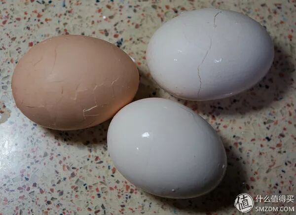 剥开一个,蛋白形态完整,光滑柔嫩,但是上面会留下纹路细腻均匀的褐色茶痕。