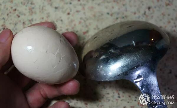 7、然后,最好有一把圆底汤勺,左手拿蛋不住旋转,右手拿勺,用勺子底部轻轻把蛋壳上轻轻敲出均匀的裂纹,但是不要用力过大导致蛋壳剥落,如果想要完美卖相和味道的茶叶蛋,这个过程至关重要。