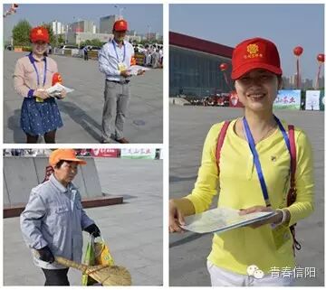 当然,小编觉着,要特别感谢的还有在会展中心广场前为慕名而来的外地游人及客商发放信阳公交乘车线路导向图的志愿者们,和在大太阳下清洁的环卫工们,你们辛苦啦~
