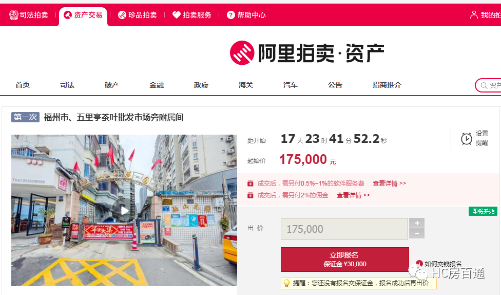 福州五里亭茶叶批发市场附属间低价公开拍卖