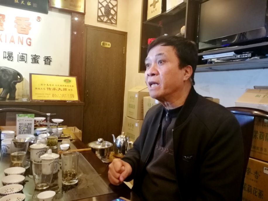 算上今年,高愈正正好在这里开了20年的店,他经营的是一家纯手工加工炭焙茉莉花茶的茶行。