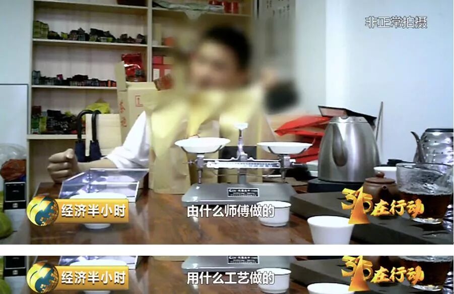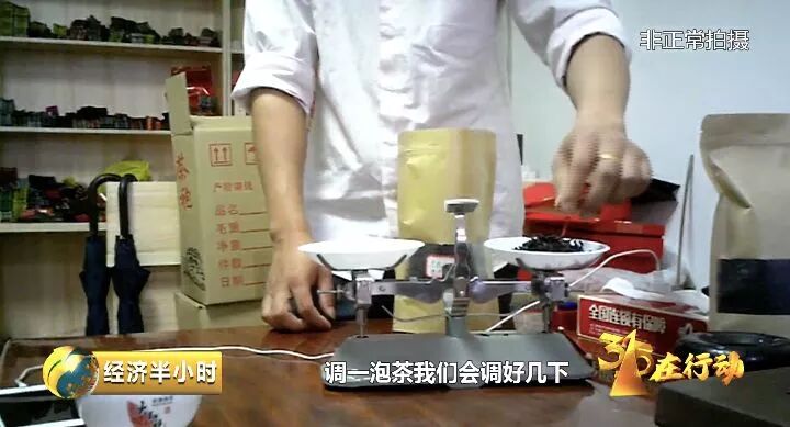 为了让记者一目了然,阿青的丈夫当场演示了如何用其它低价茶叶,拼出高价“牛栏坑肉桂”的过程。