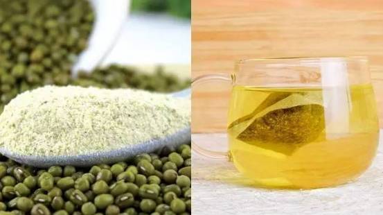 材料:绿豆粉一大匙,茶叶包2个,开水适量。