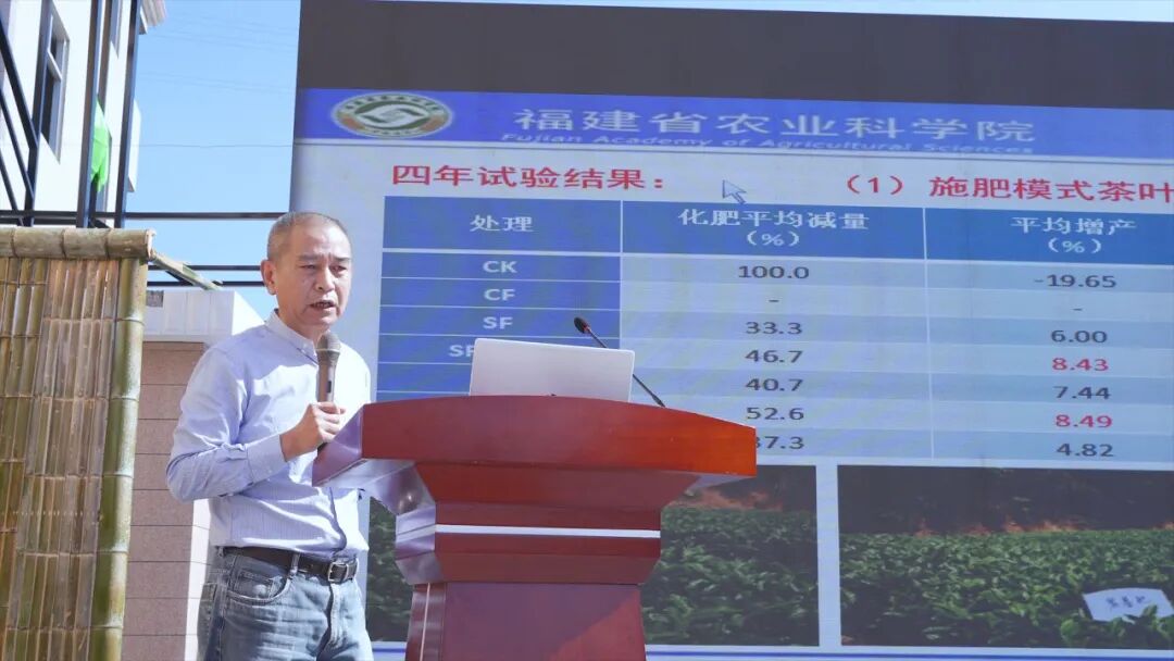 国家茶叶产业技术体系执行专家组成员、福建省农业科学院茶叶研究所所长尤志明作了题为《安溪茶园生态建设与科学用肥用药技术》的演讲。“好茶是种出来的,是源自优质鲜叶!”尤志明认为,湖上乡茶园土壤pH比全县平均值高0.12个百分点、有机质高32.5%,具有种天然种茶优势。
