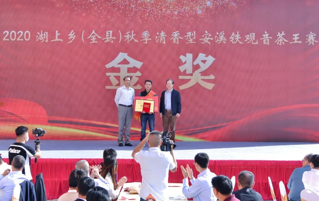 现场首先举办的是茶王赛颁奖。据了解,湖上乡茶王赛共收到来自湖上乡辖区内的参赛茶样153个。经过激烈角逐,共决出金奖一名,银奖两名,铜奖三名,优质奖六名。