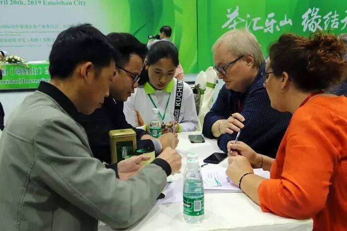 4月20日上午,第四届中国茶乡峨眉山国际茶文化博览交易会举行第二届茶叶出口国际采购洽谈会,来自丹麦、新加坡、加拿大、俄罗斯、意大利、越南、拉脱维亚等10余个国家和地区共40家采购商参加了洽谈会,与国内60家茶叶出口企业开展了“一对一,面对面”的洽谈,助力中国茶叶走向世界。