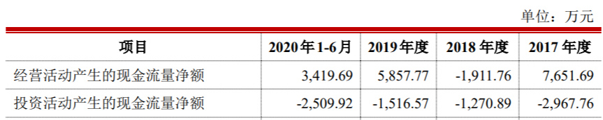 报告期内,公司持续进行固定资产、在建工程等长期资产投资以满足经营规模的扩大需求,导致公司投资活动产生的现金流量净额持续为负。2017 年度,公司投资活动产生的现金流量净额负值较高,主要还受到公司出资普洱茶小镇共计支付现金 1000万元的影响。2020 年 1-6 月,公司购置土地支出,使得投资活动产生的现金净流出增加。