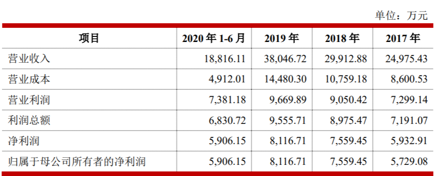 2017年、2018年、2019年,公司营业收入分别为2.50亿元、2.99亿元及3.80亿元,扣非归母净利润分别为0.66亿元、0.74亿元、0.81亿元。