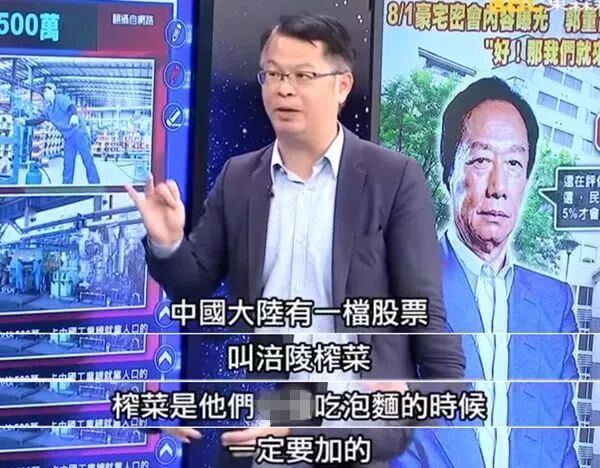 这老头说:“大陆人吃泡面一定要配榨菜,但最近一段时间他们连榨菜都吃不起了……”
