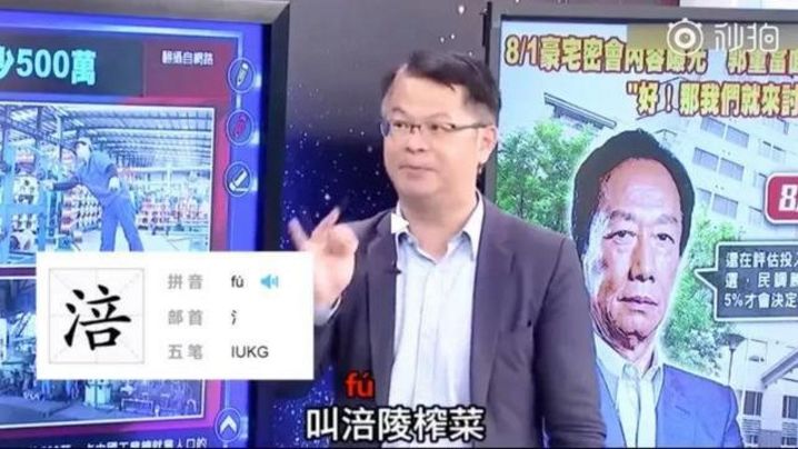 他说大陆有只股票叫“涪陵榨菜”,品牌旗下的榨菜在大陆人心目中堪称“泡面搭档”。但黄世聪错把“涪陵”的“涪(fú)”读成了“péi”。