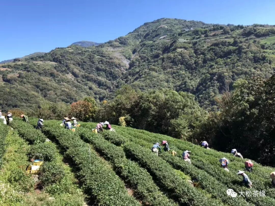 台湾的茶农在摘茶,都是手工採摘,台湾高山茶标准都是三叶一芽,