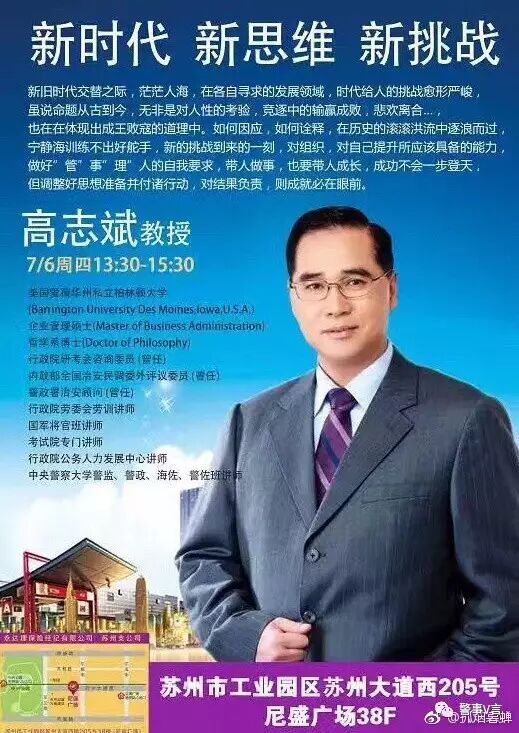 不经意间,这个台湾的名人又火了。近日,苏州一家外资投资的保险经纪公司邀请台湾名人高志斌来苏州做讲座,讲座的主题是“新时代、新思维、新挑战”。