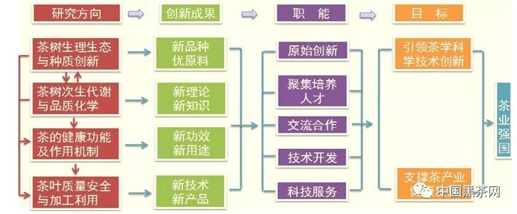 经过40年的发展,安徽茶叶科技已初步构建了涉及茶叶相关的一二三产业高度融合的茶叶科技创新大格局。在茶叶科技创新体系方面,安徽茶产业已形成以茶学高校、科研院所、龙头企业和行业协会组织为创新主体;以安农大茶学国家重点实验室、安徽农科院茶叶研究所试验基地以及各市区茶叶试验站为创新平台和基础设施;以安徽省茶产业技术体系专项资金、安徽省(地市)政府农业技术研发和推广资金,省内茶学高校科研单位茶叶科技工作者等为创新资源;以茶树栽培管理、茶树育种、茶叶机械设计、茶叶深加工、茶叶天然产物等为创新的客体要素;政、产、学、研相结合的综合性科技创新体系。