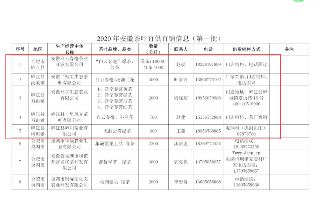 2020年安徽茶叶直供直销信息公布,庐江地区有~~