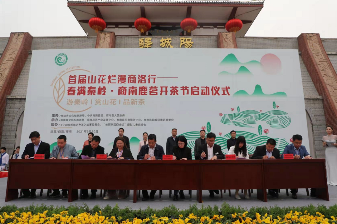 3月30日,商洛市首届山花烂漫商洛行——春满秦岭•商南鹿茗开茶节在富水阳城驿景区启动。