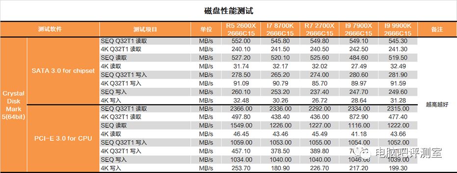NVME的测试由于漏洞门补丁原因,I7 8086K会大幅落后于I7 8700K,这是正常现象,不必纠结。