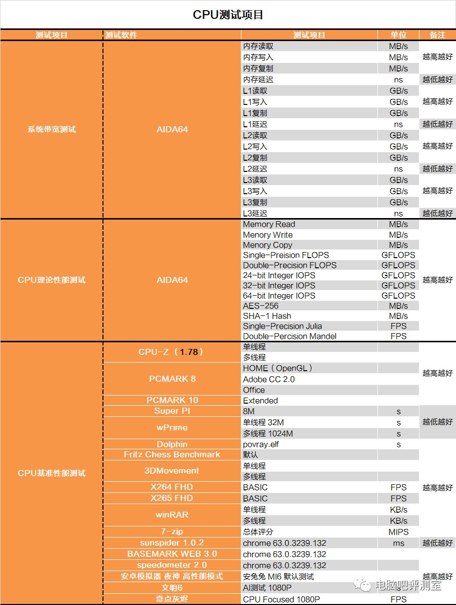· CPU性能测试:包含系统带宽、CPU理论性能、CPU基准测试软件、CPU渲染测试软件、3DMARK物理得分