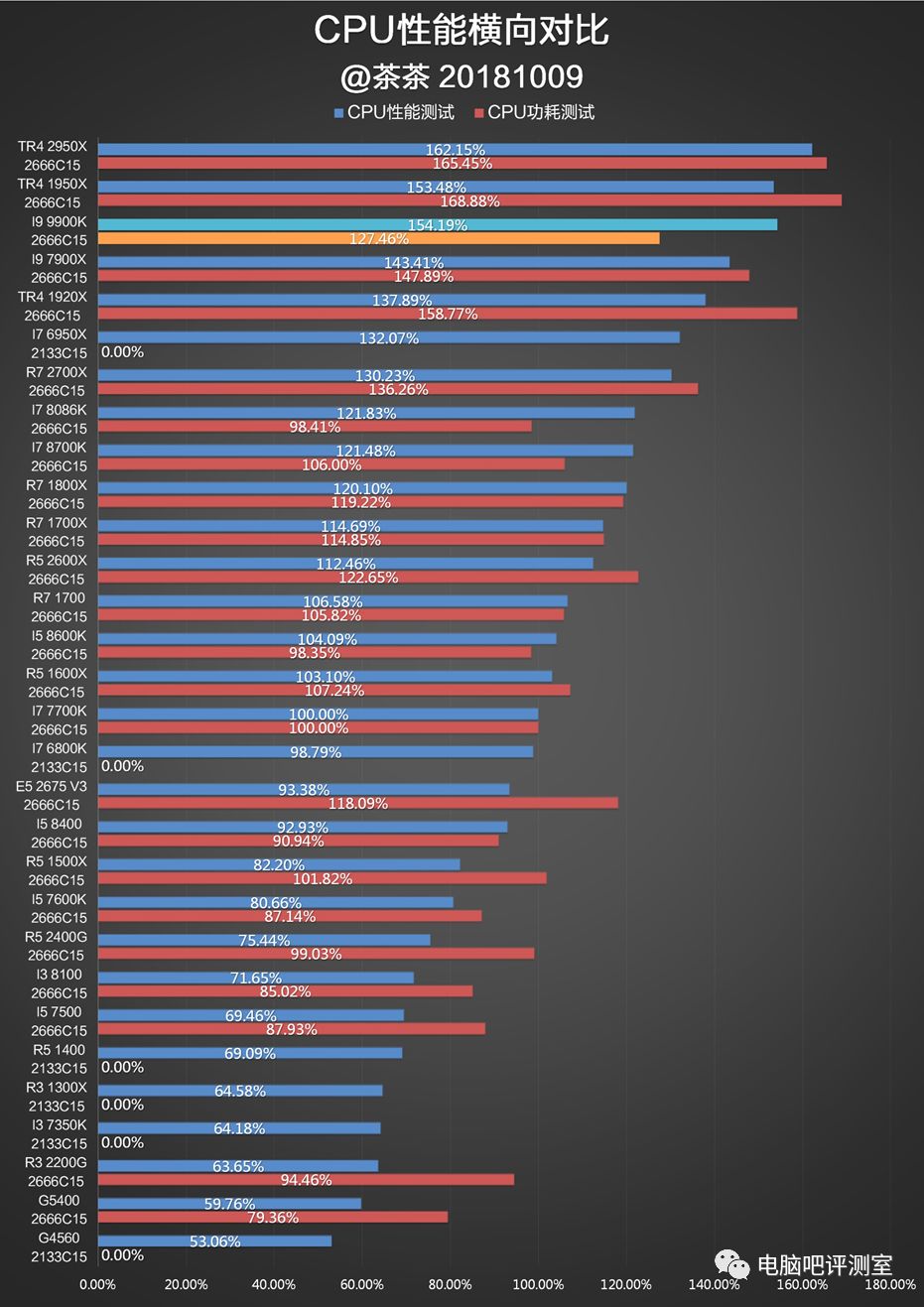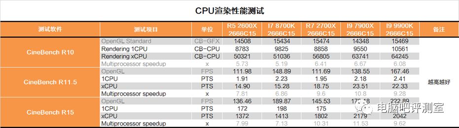 CPU性能测试部分对比小节: CPU综合统计来说I9 9900K由于八核的规格和超高的频率,确实成为现在主流级平台碾压性的新王者。