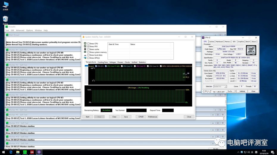 这里放一下烤机时候的截图,可以看到INTEL应该是为ZEN 2留足余地,将8核全核满载频率放在了破天荒的4.7G。